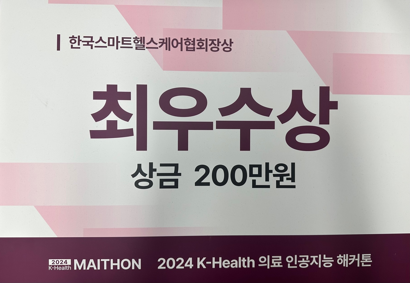 K-Health 의료 인공지능 해커톤 최우수상 수상(컴퓨터공학부 최*연, 김*민)
